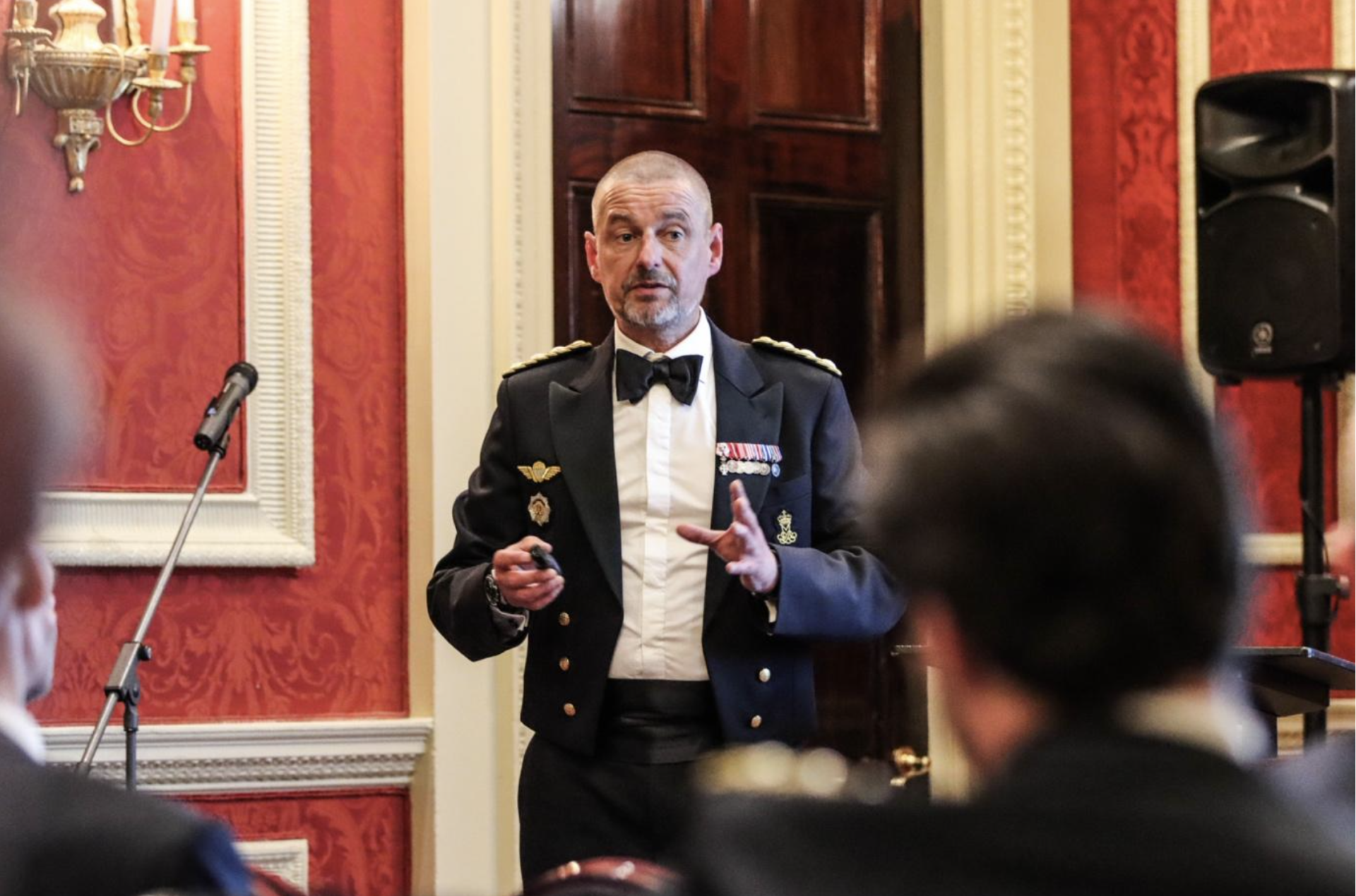 Traditionen tro inviteres der en gæst med som på aftenen afholder et oplæg. Denne gang var Lars Hedemark, Brigadegeneral (FLV) Forsvarsattaché, Kongelig Dansk Ambassade i London inviteret med.