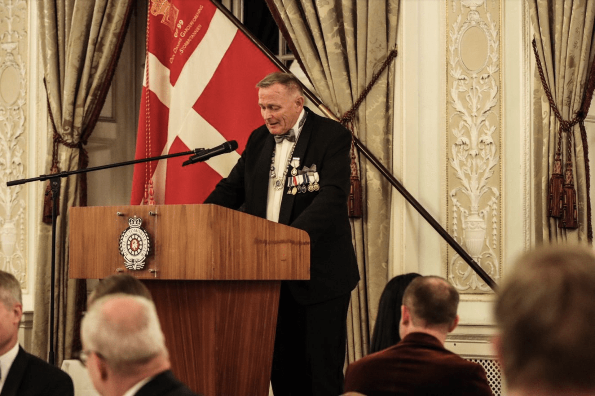 On Sunday the 7th May 2023 a memorial stone for fallen Danes was inaugurated in the garden of the Danish Church in London. Prior to the dedication of the memorial stone, there was a memorial service in the filled church, where Pastor Flemming Kloster Poulsen reflected on Søren Kierkegaard's thoughts on remembering the dead in order to understand how to love the living, as well as the symbolism of a memorial stone. The initiator of the memorial stone is the chairman of the Danish Guards Association in the UK, Amin Amirian, who, in September 2020, had a video call with co-initiator and former Colonel in the Princess of Wales's Royal Regiment, Wayne Harber OBE, who is now the Chairman of The Anglo-Danish Society. Amin wanted a place where he could remember and honour a fellow soldier from the Royal Guards who lost his life in Iraq in 2006, so he asked Wayne if there was a memorial for fallen Danes in London. Wayne returned a few days later and concluded that there were Danish memorials in the UK, but they were dedicated to specific events or individuals. That day the idea of a memorial stone was born. It was important that the entire Danish community in the UK was behind the project. The Danish Guards Association in the UK, The Anglo-Danish Society, The Danish-UK Association, and the Danish Church participated in the working group. Fundraising was quickly organised and successful. It was decided that the memorial stone should be placed at the church in London and be a memorial for all fallen Danes, whether they were in uniform or civilians. That it should be a stone which looks back into history and remains relevant for future generations. The former chairman of the Danish Guards Association in the UK, Anders M. Hansen, designed a proposal inspired by the runestones of the Vikings, which was approved by the working group. Now, all that was left was to find the stone, which stone mason Nick Johnson was supposed to do. However, it turned out to be more challenging than expected and caused delays in the project timeline. This resulted in Amin himself started searching for the perfect stone himself from a hotel room in New York one early morning. He found the stone shortly after speaking with a farmer in Cornwall who had the large stone buried in his fields. The large grey granite stone from Cornwall has the inscription: 'In memory of those who lost their lives in service to Denmark.' The Danish flag, Dannebrog, is carved into the front of the stone. It was decided that the memorial stone would be inaugurated on the Sunday closest to Denmark's Liberation Day, and it was done with songs, speeches, and wreath-laying. Among those present at the inauguration were Defence Attaché Brigadier General Jan Kazimierz Toft, Lieutenant Colonel Henrik Schirrmacher from the Royal Danish Life Guards, and Brigadier General Chris Davies OBE from the Princess of Wales's Royal Regiment.
