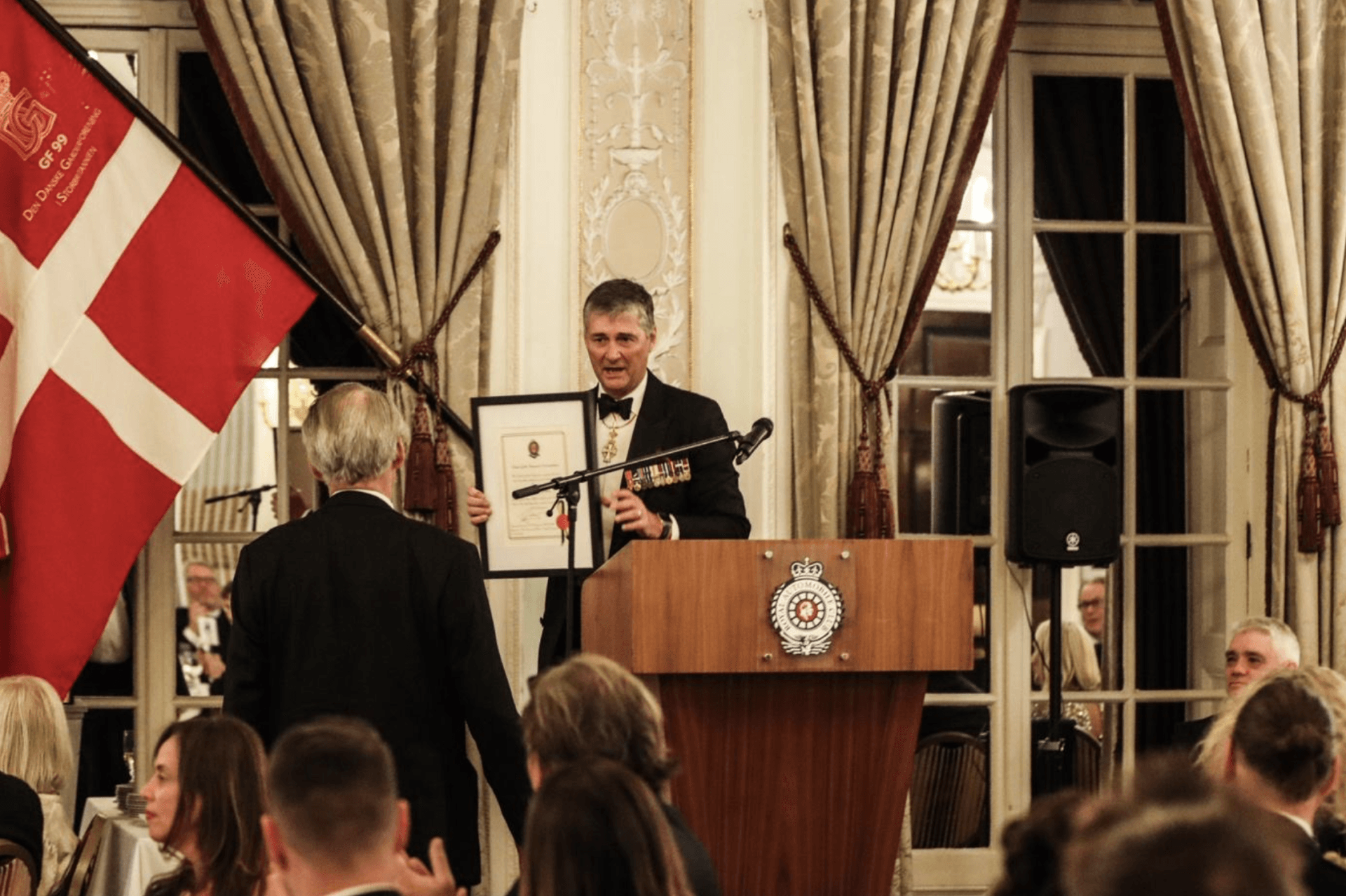 Peter Laub modtog “The Colonel of the Regiment Commendation” fra John Powell, Regimental Secretary to The Prince of Wales’s Royal Regiment.